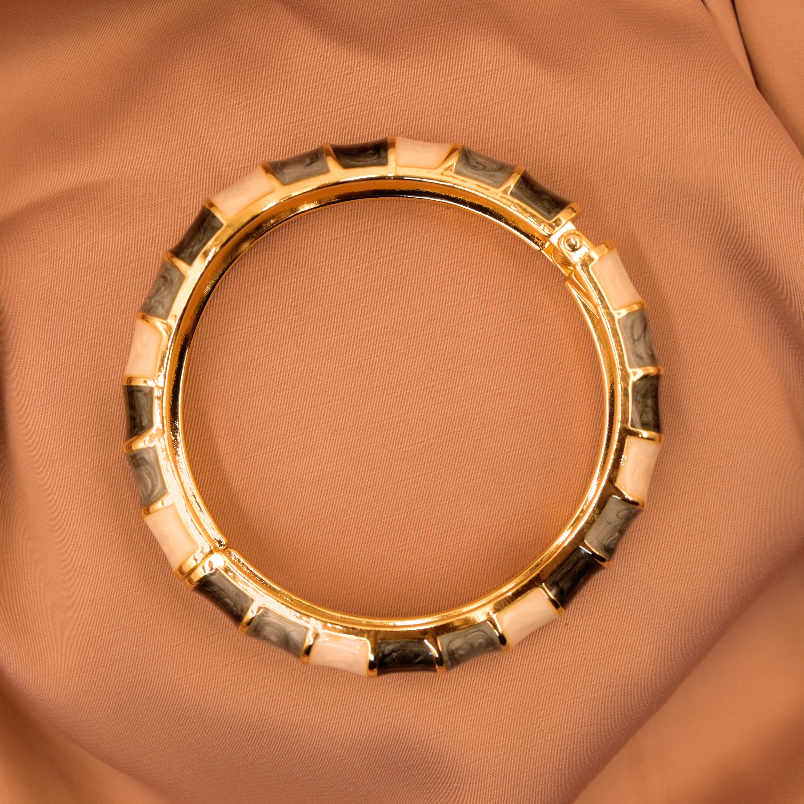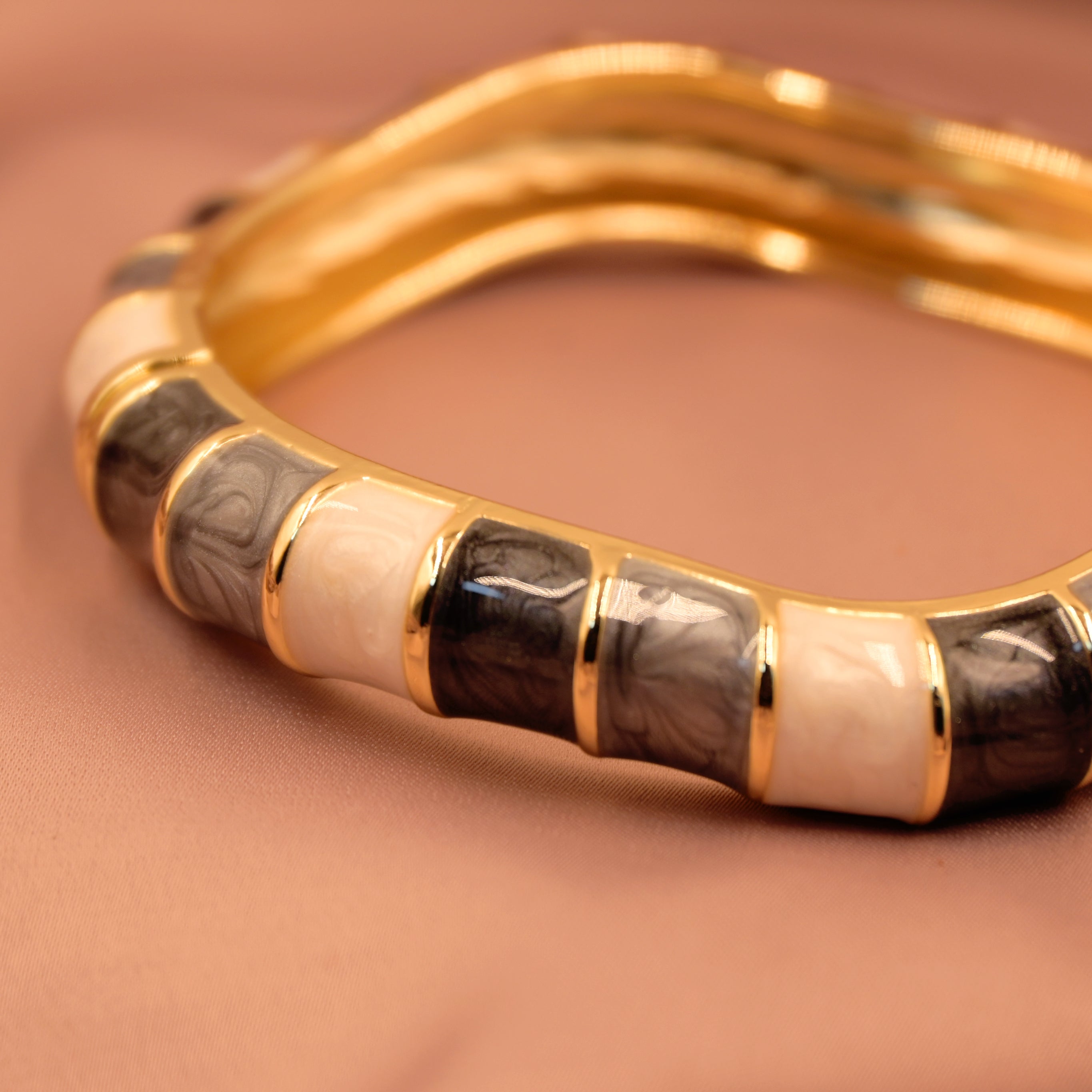 A sleek interplay of black and white tones, these bangles bring modern minimalism and bold sophistication to your style. Perfect for those who love clean elegance with a striking edge, they transition effortlessly from casual chic to evening glamour.