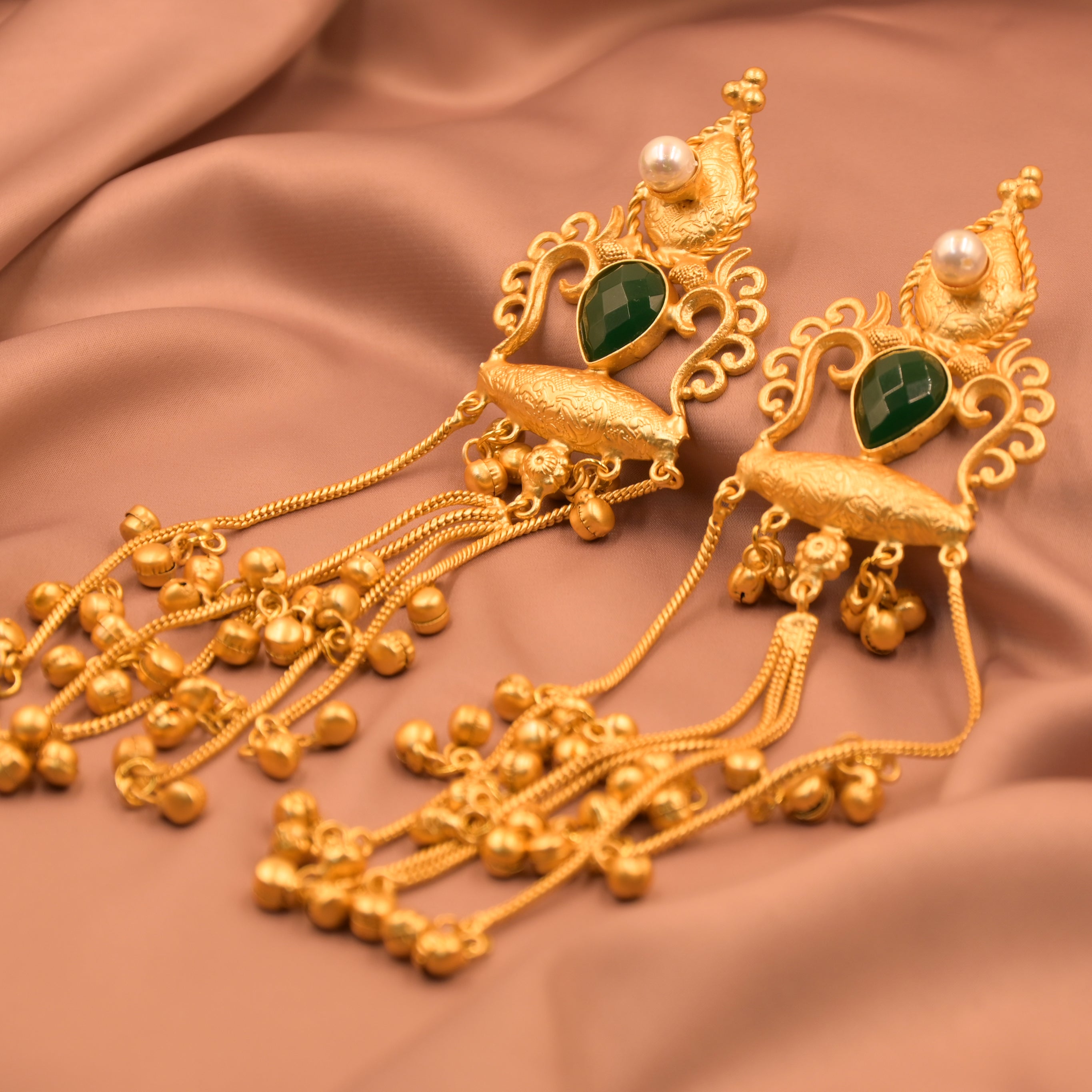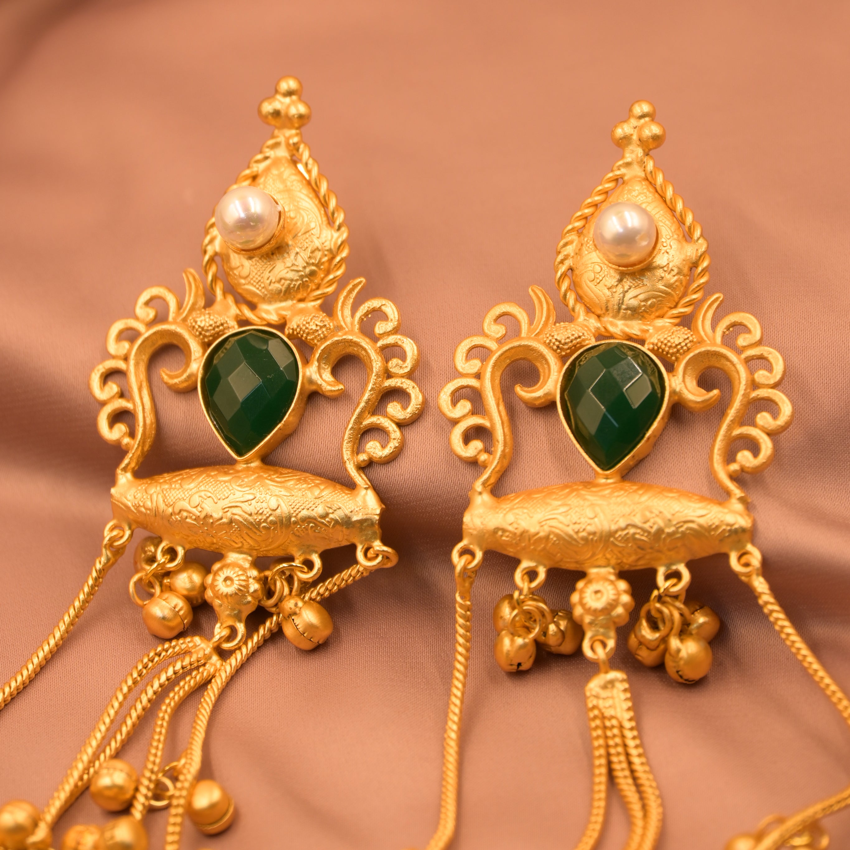 Kashmiri Green Jhumke | Traditional Tassel Drop Earring