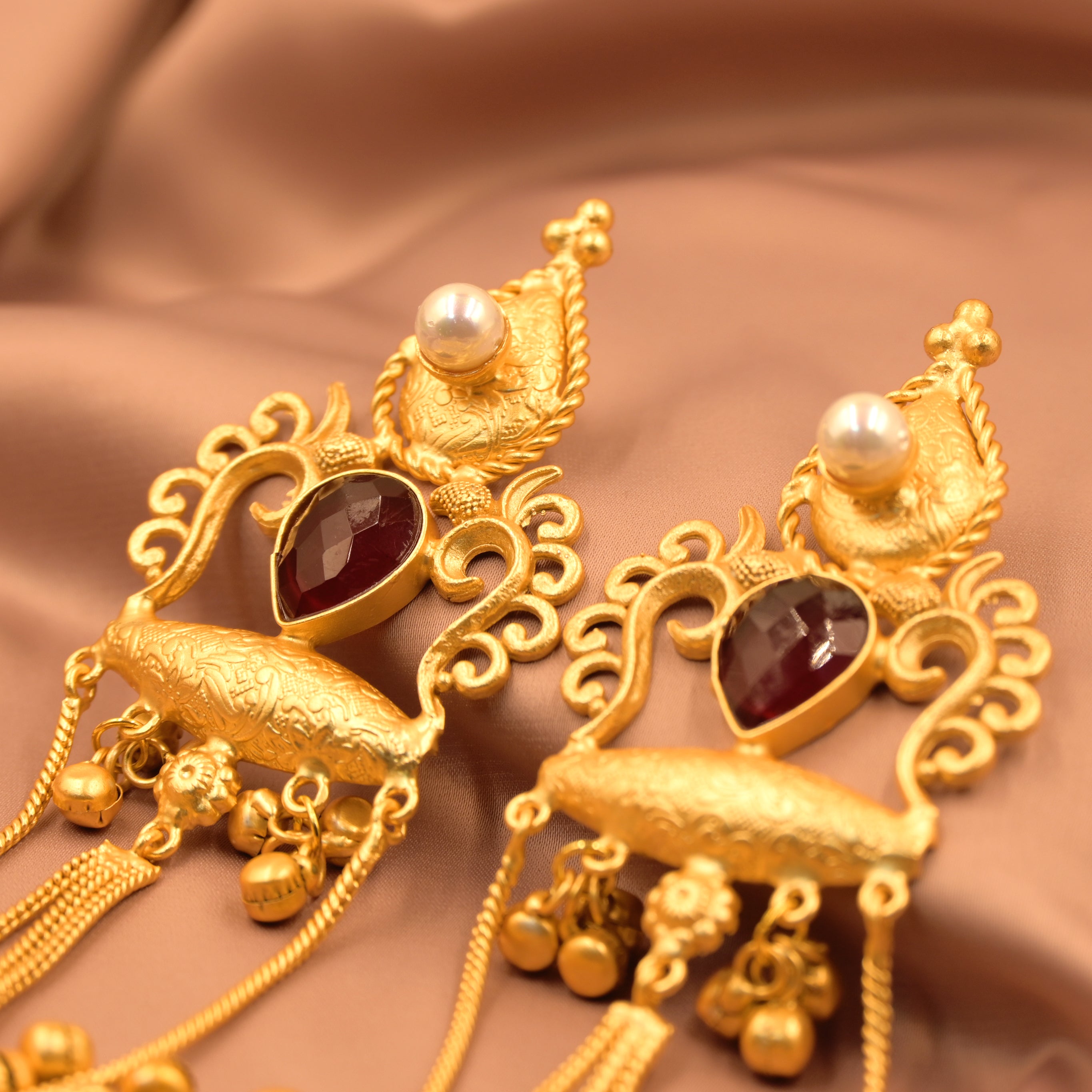 Kashmiri Maroon Jhumke | Royal Traditional Tassel Earrings