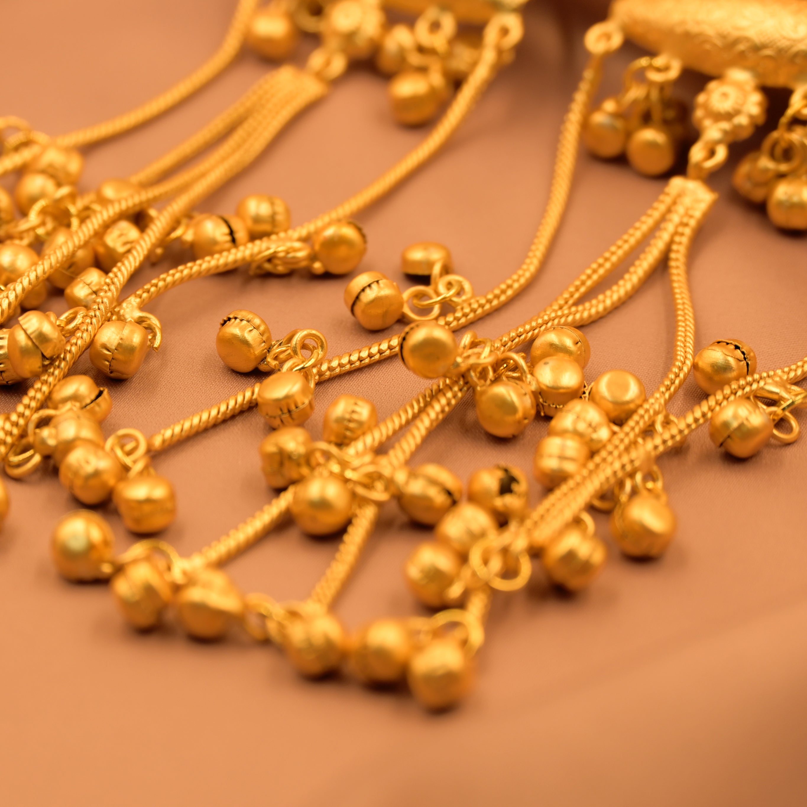Enhance your ethnic elegance with these stunning Kashmiri Maroon Jhumke, beautifully inspired by traditional craftsmanship. Featuring rich maroon stone detailing, pearl accents, and intricately designed gold-toned motifs, these earrings are finished with flowing tassel chains and delicate ghungroo drops that create graceful movement with every step. A perfect blend of...