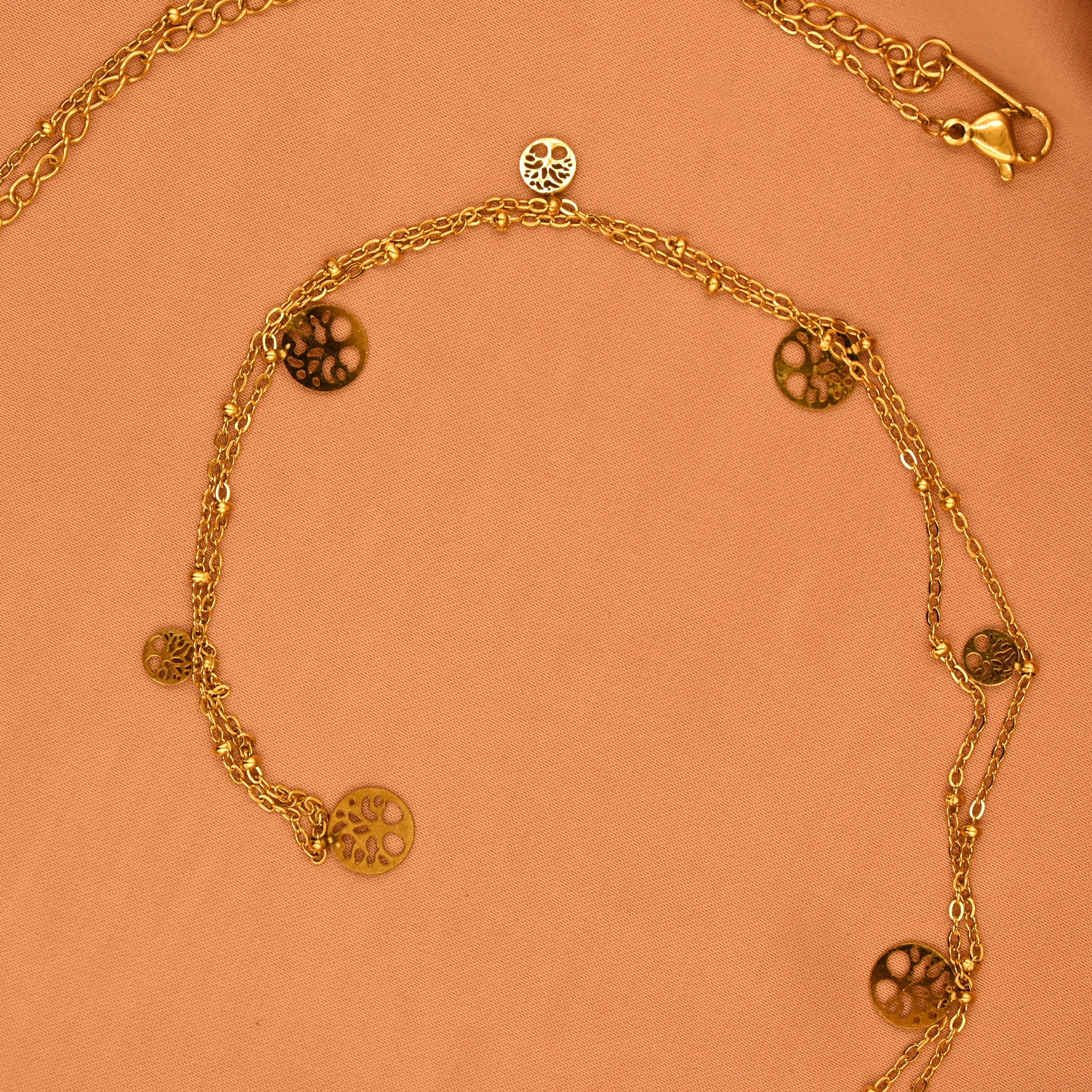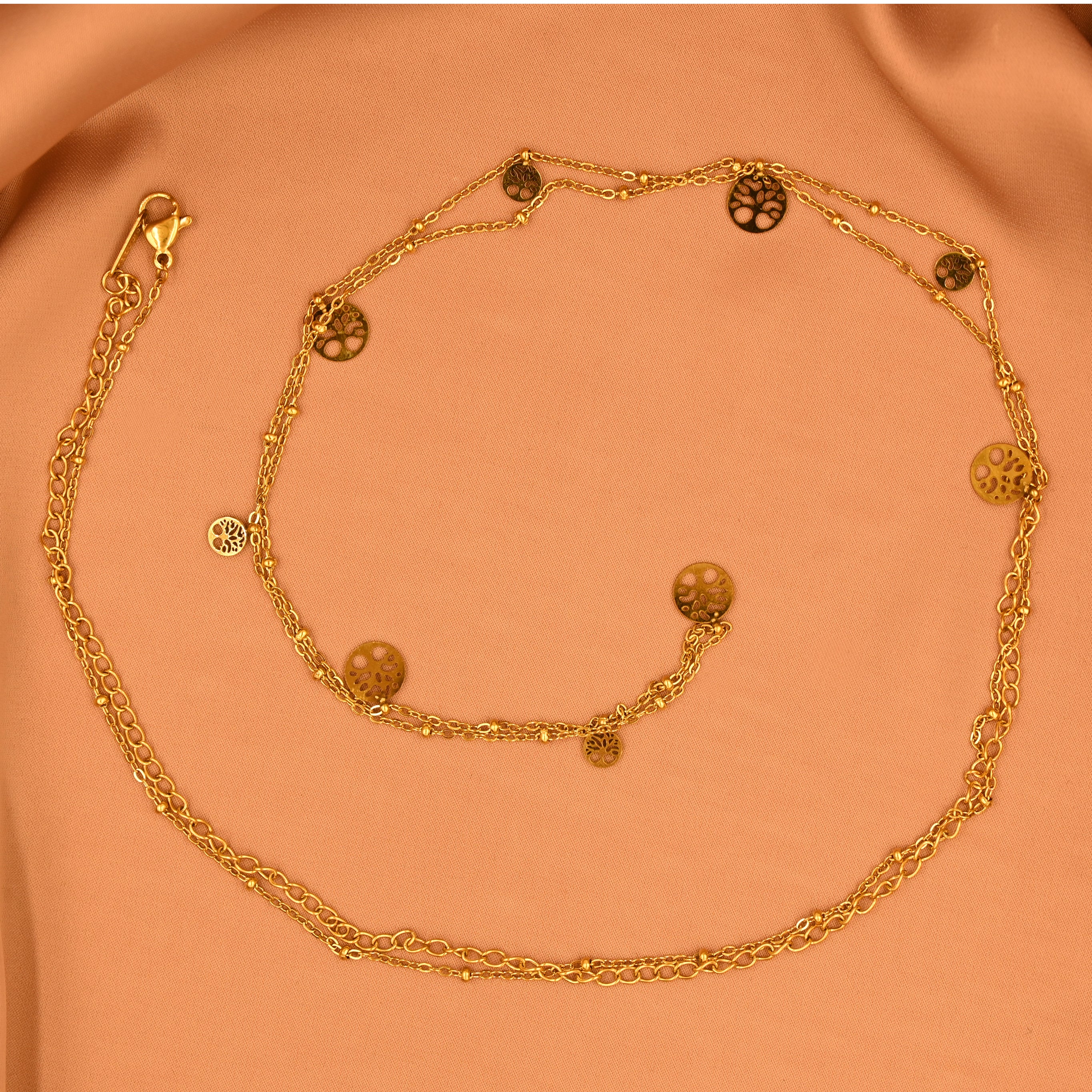 Make a bold statement with The Tree of Life Waist Chain.Symbolic and elegant, The Tree of Life Waist Chain features intricate tree motifs that represent growth, strength, and harmony. Perfect for adding a meaningful touch to any outfit, it brings graceful charm and sophistication to your waistline. Key Features: Design:...