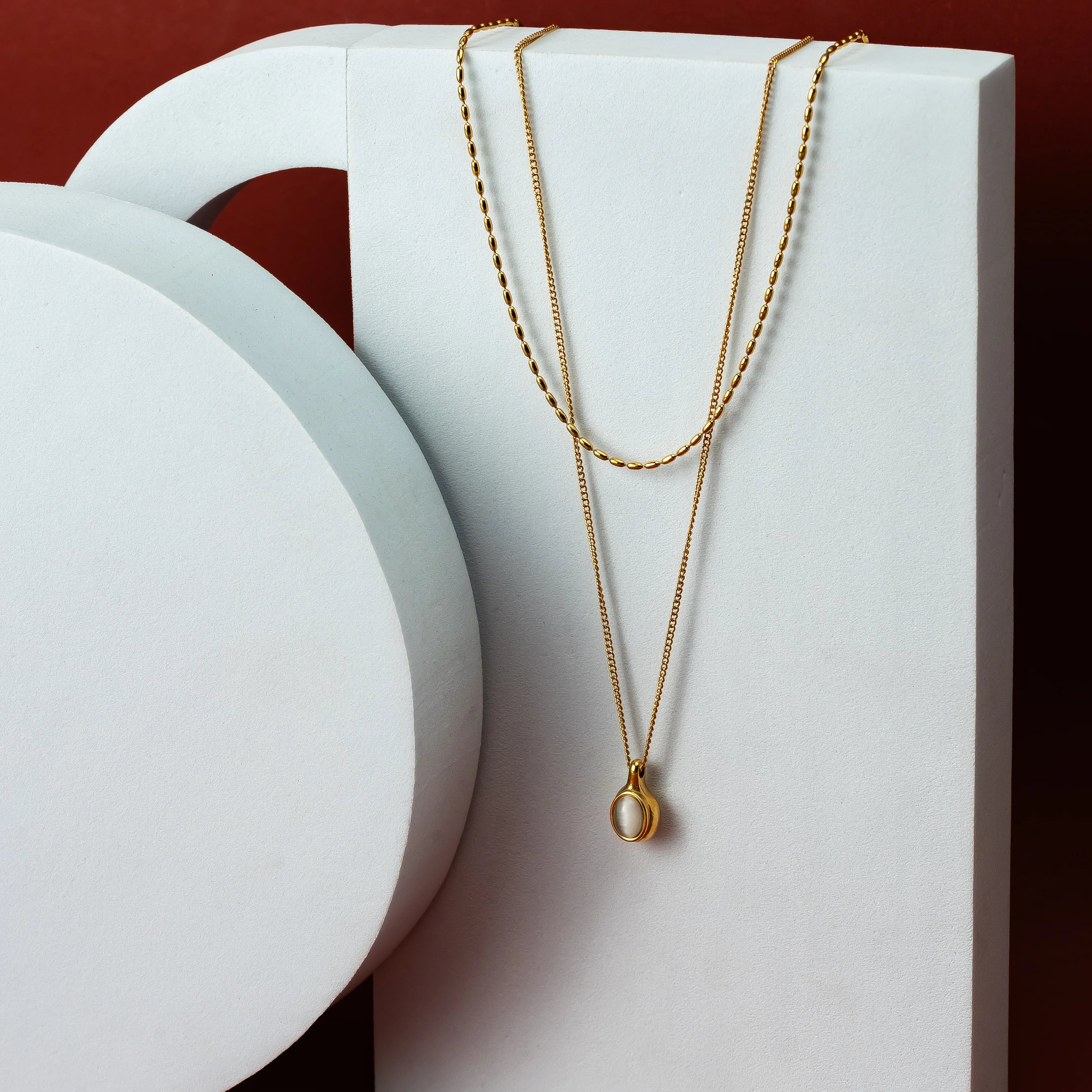 Bring the beach to your wardrobe with the Double Layer Shell Stone Necklace. Featuring two tiers of finely placed shell and stone accents, this necklace blends coastal textures with city-sleek style. Ideal for layering or wearing solo for a boho-chic vibe. Key Features: Design: Two-layer chain with natural shell and...