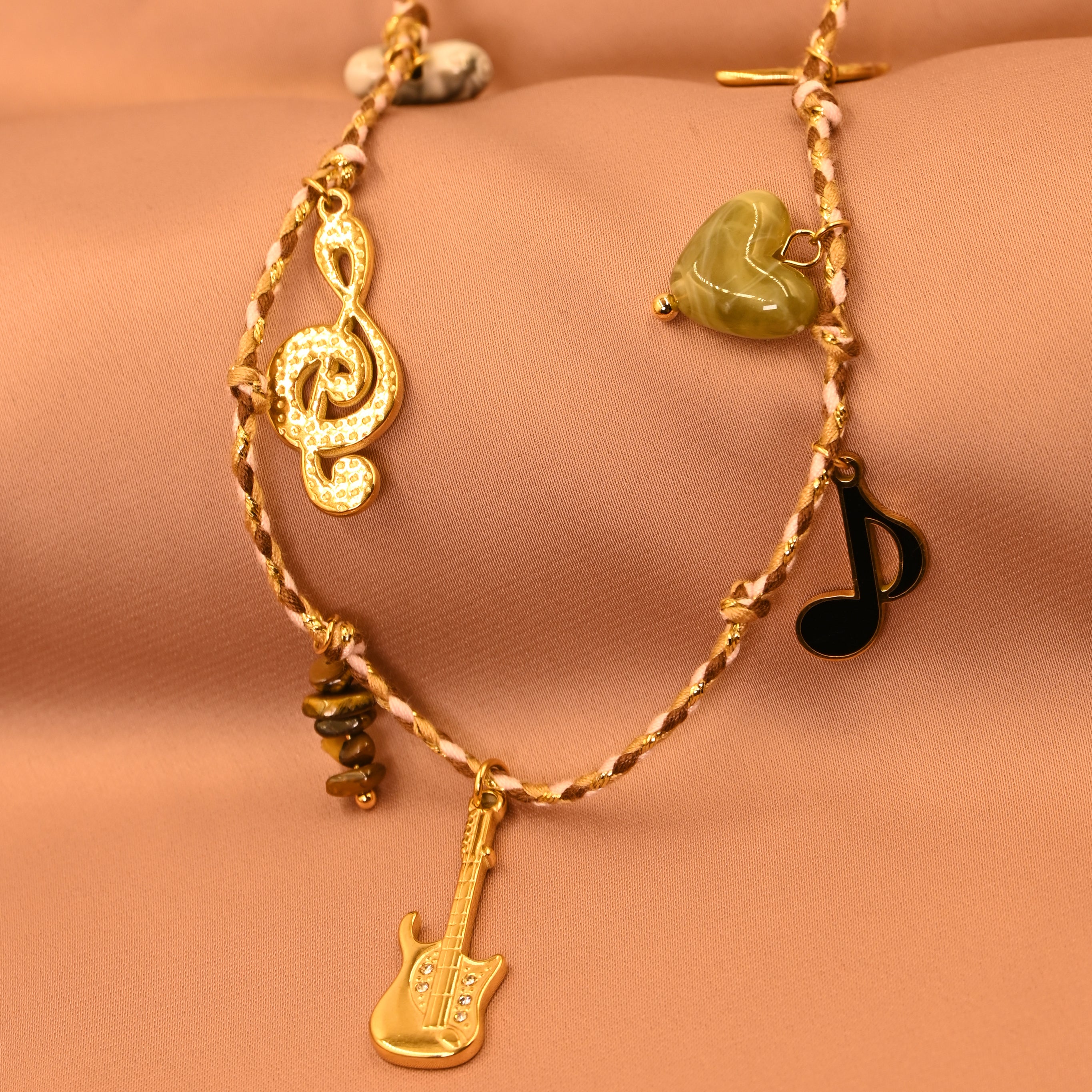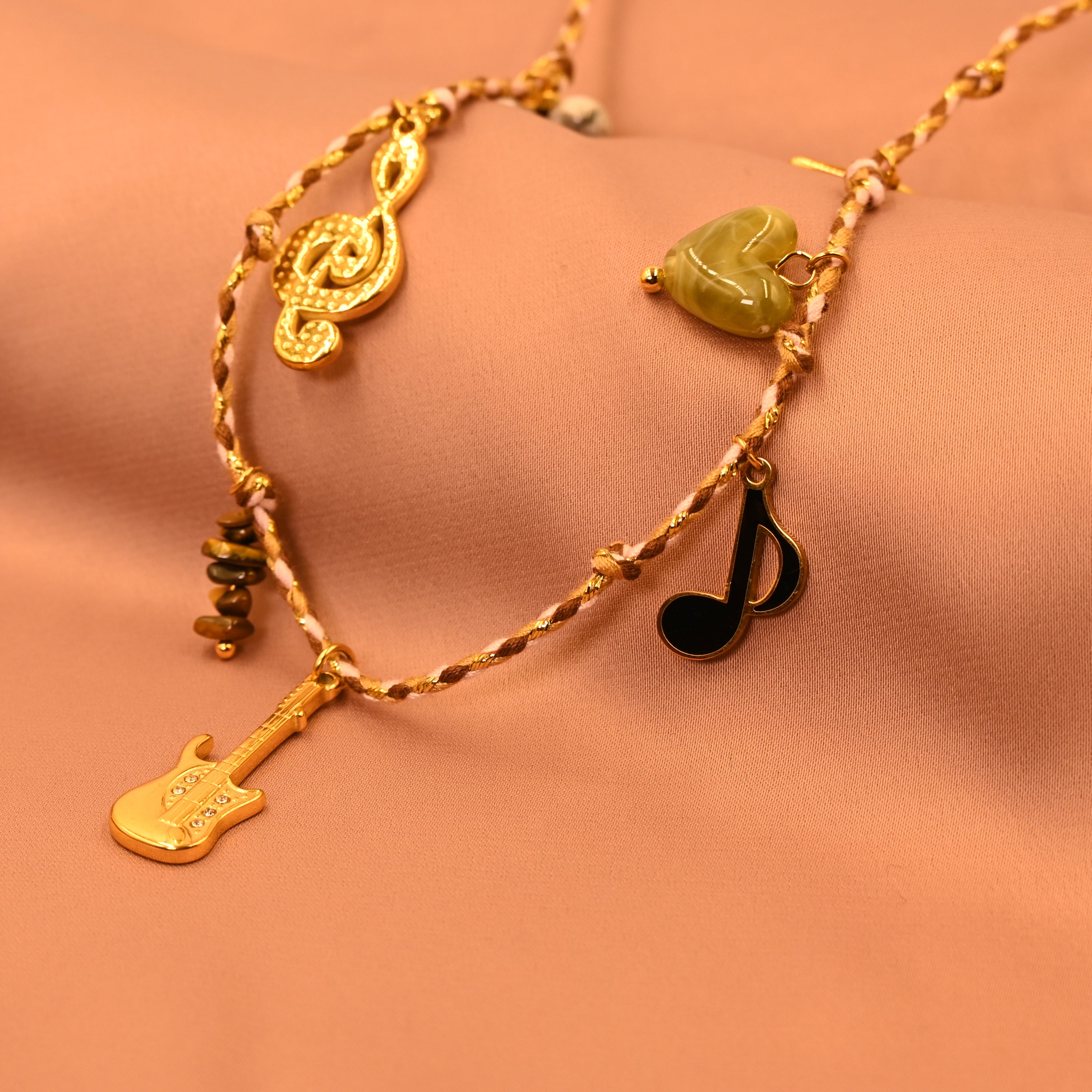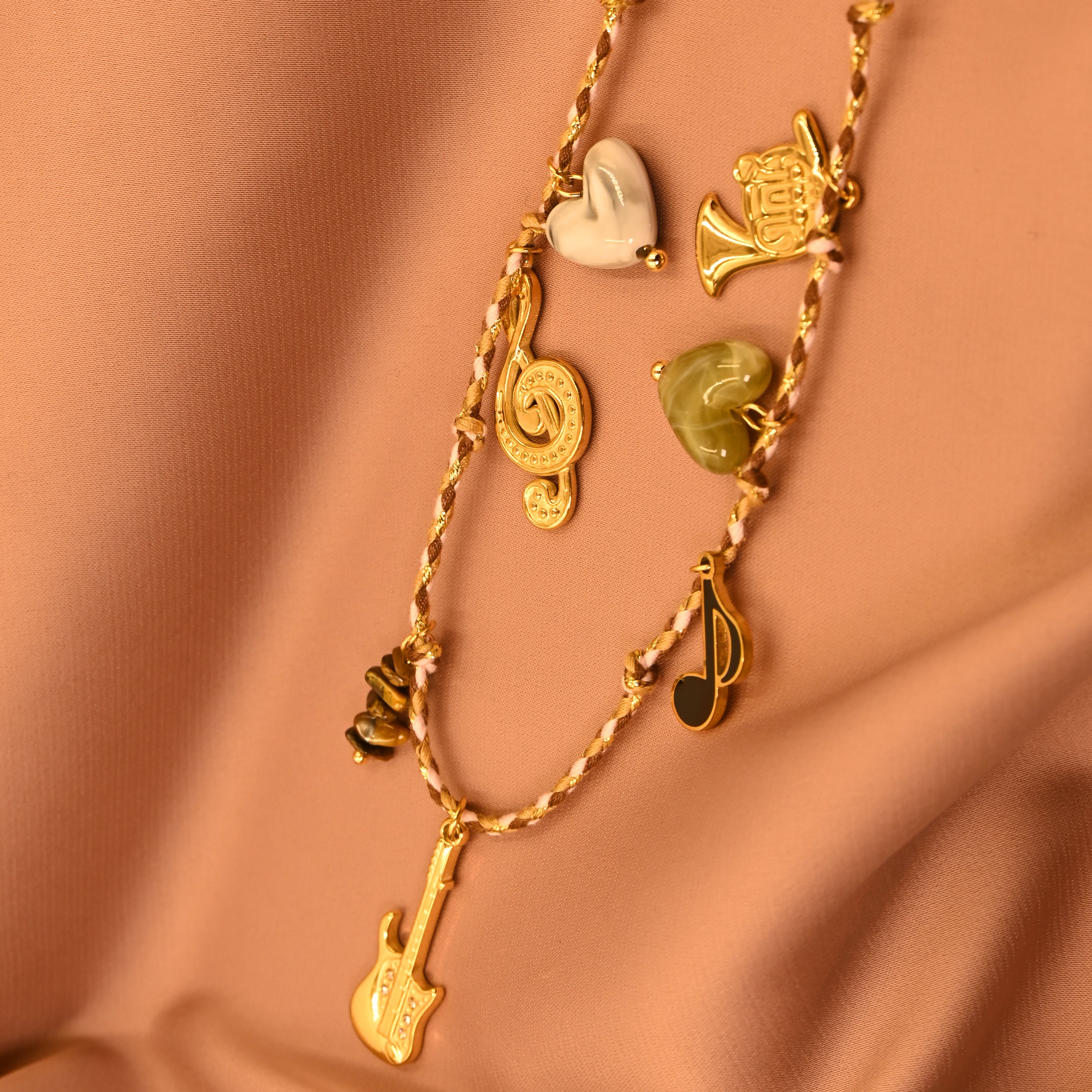 Make a bold statement with The Musical Charm Necklace.Playful and expressive, The Musical Charm Necklace celebrates the rhythm of life with its dainty music-inspired charms. Perfect for music lovers and free spirits alike, it adds a creative and elegant touch that harmonizes beautifully with any outfit. Key Features: Design: Music...