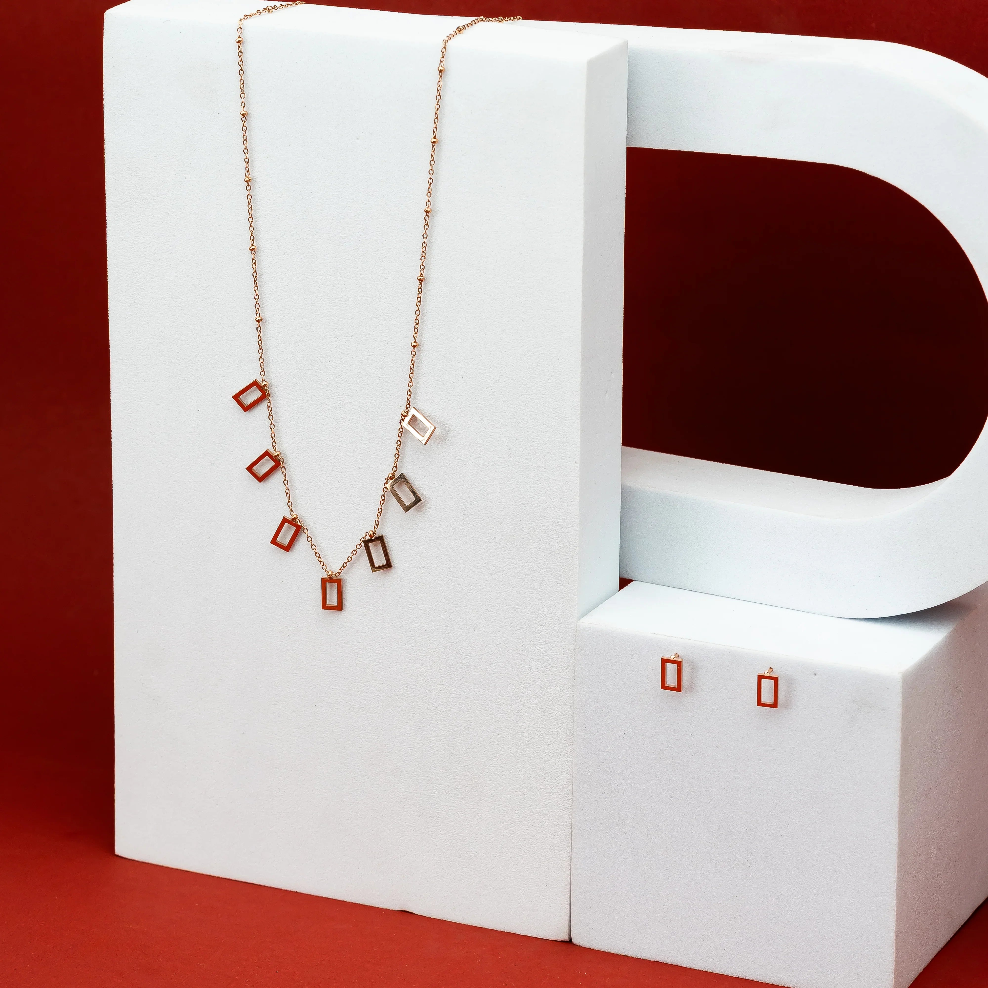 Turn heads with the Rectangular Charm Necklace and Earrings set — a timeless ensemble that brings sophistication and sparkle to any look. Designed to make a subtle yet memorable statement, this set blends elegance with modern charm.Key Features: Design: Sleek rectangular charms with a matching necklace and earring combo Material:...
