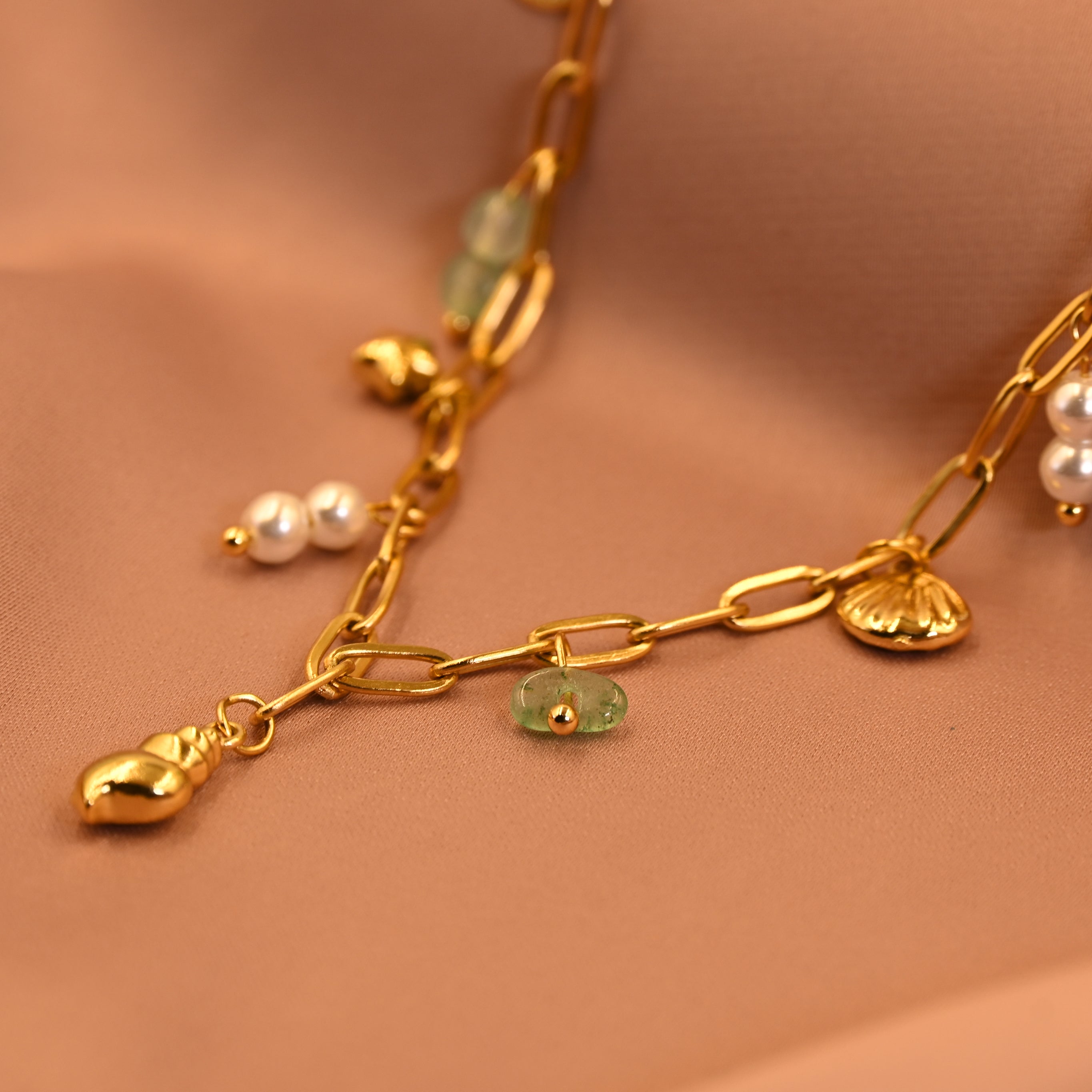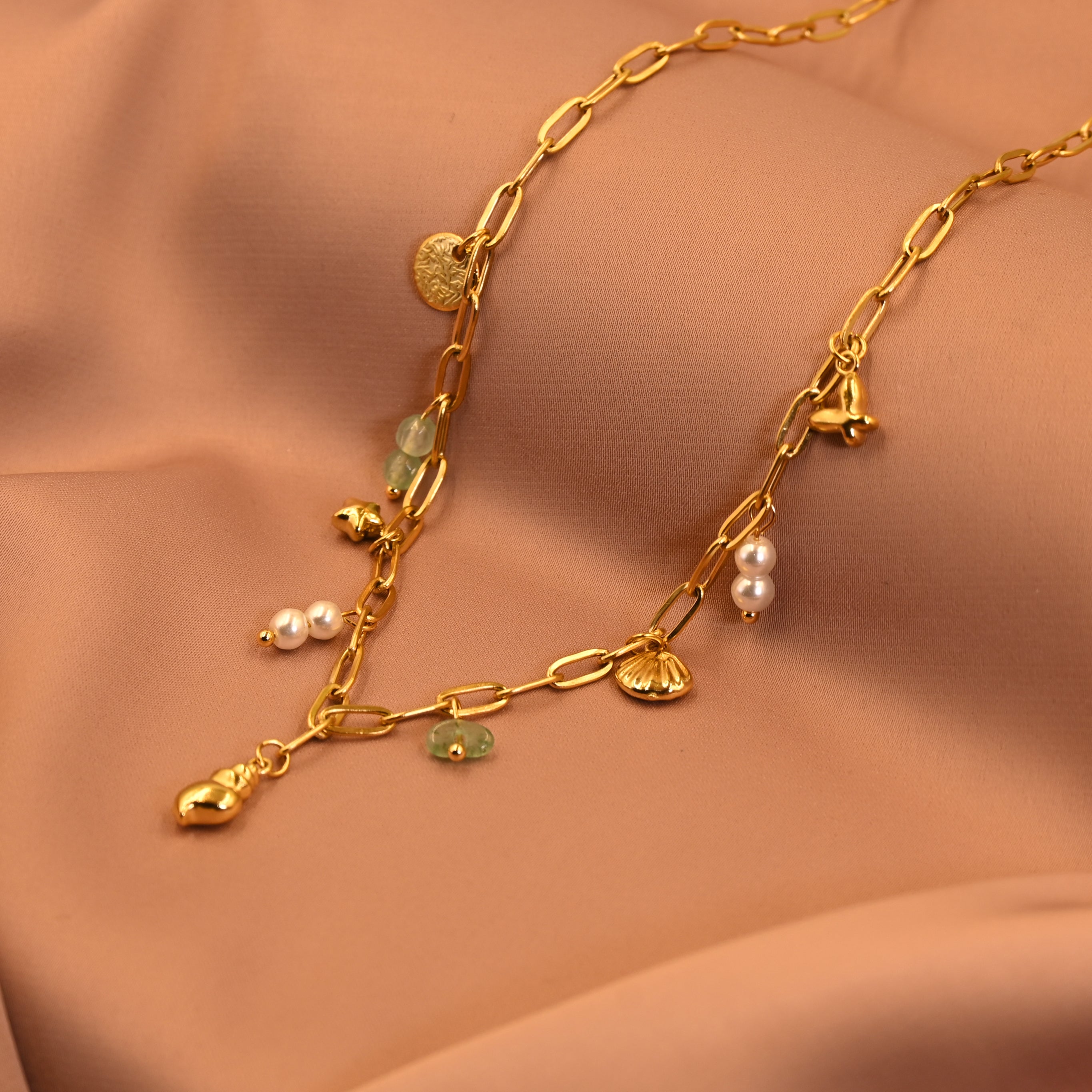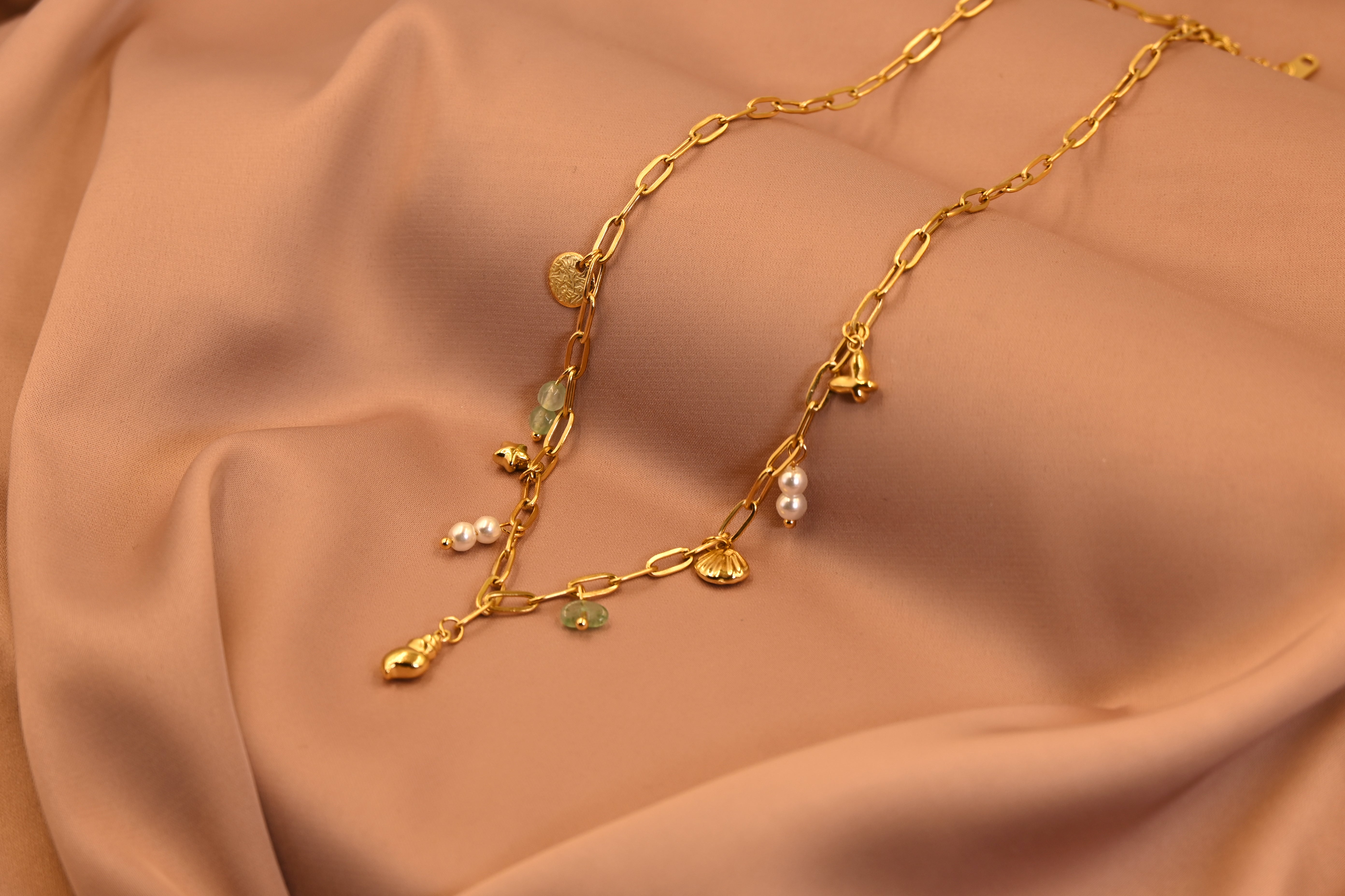 Make a bold statement with The Whisper Charm Chain.Delicate and enchanting, The Whisper Charm Chain features dainty charms that seem to dance softly with every movement. Perfect for adding a subtle touch of elegance and charm to any outfit, it brings understated sophistication to your look. Key Features: Design: Dainty,...