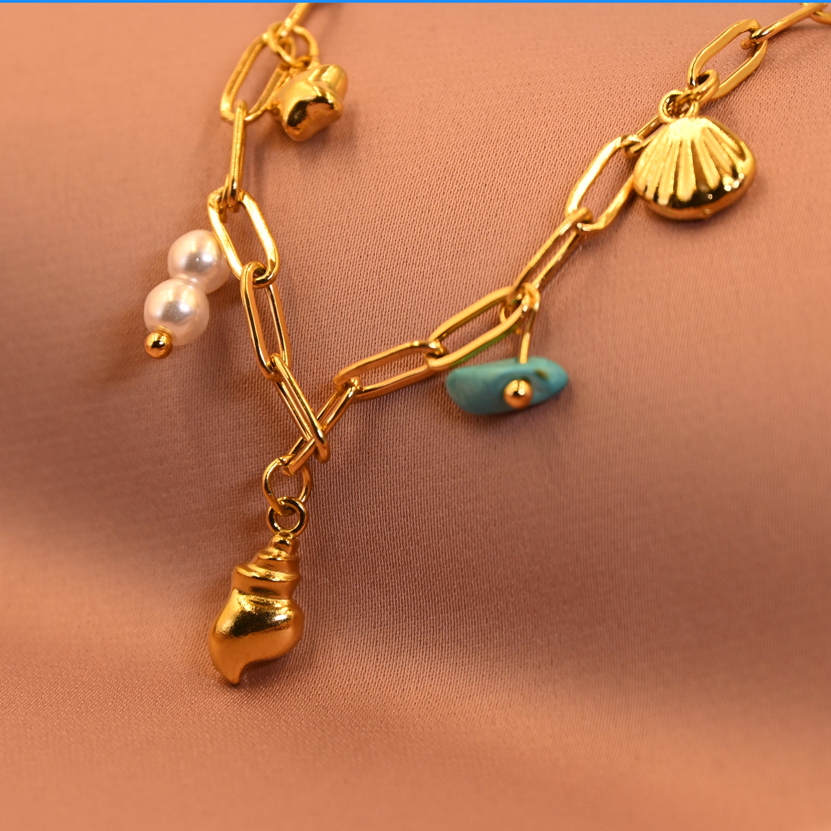 Make a bold statement with The Whisper Charm Chain Blue.Delicate and enchanting, The Whisper Charm Chain Blue features dainty charms accented with soft blue tones, evoking a serene and calming vibe. Perfect for adding a subtle pop of color and elegance to any outfit, it brings understated sophistication to your...