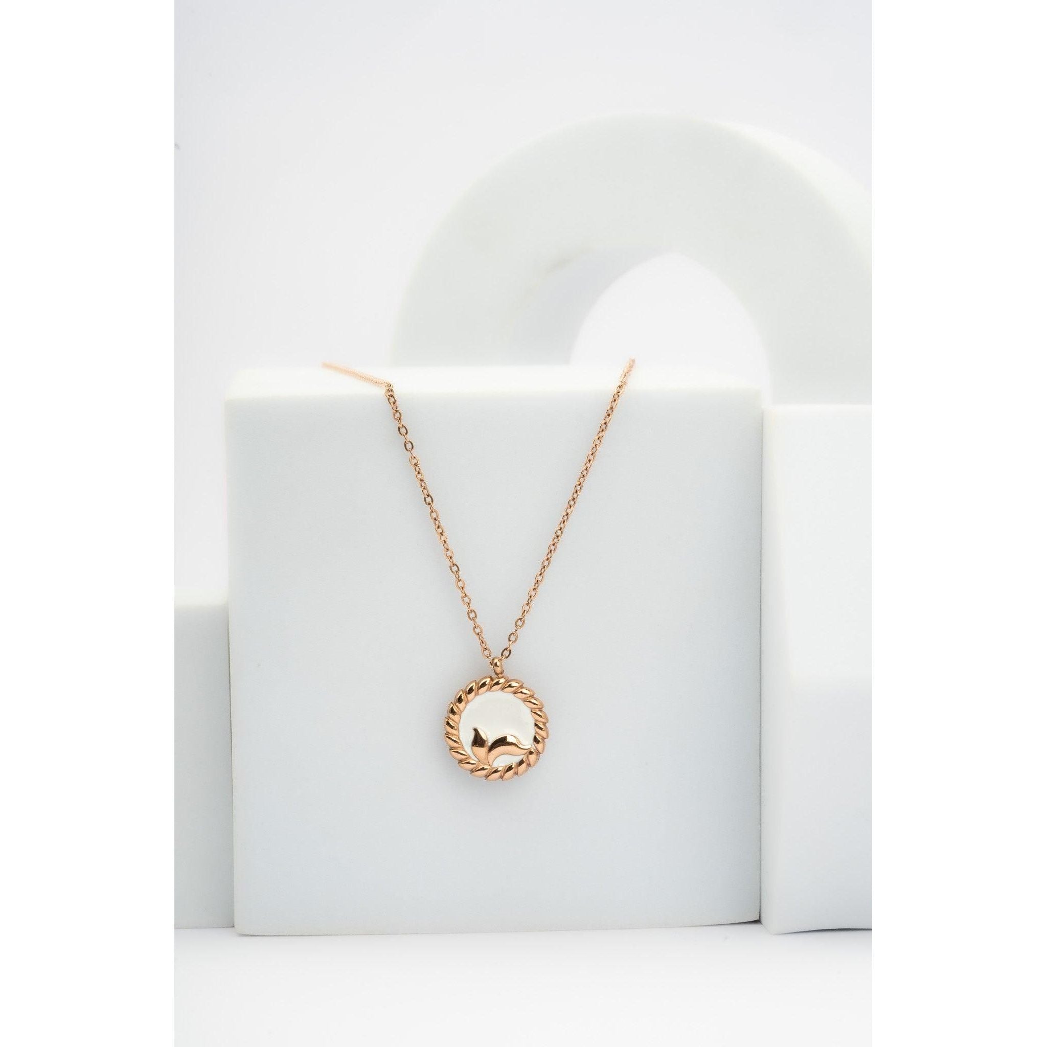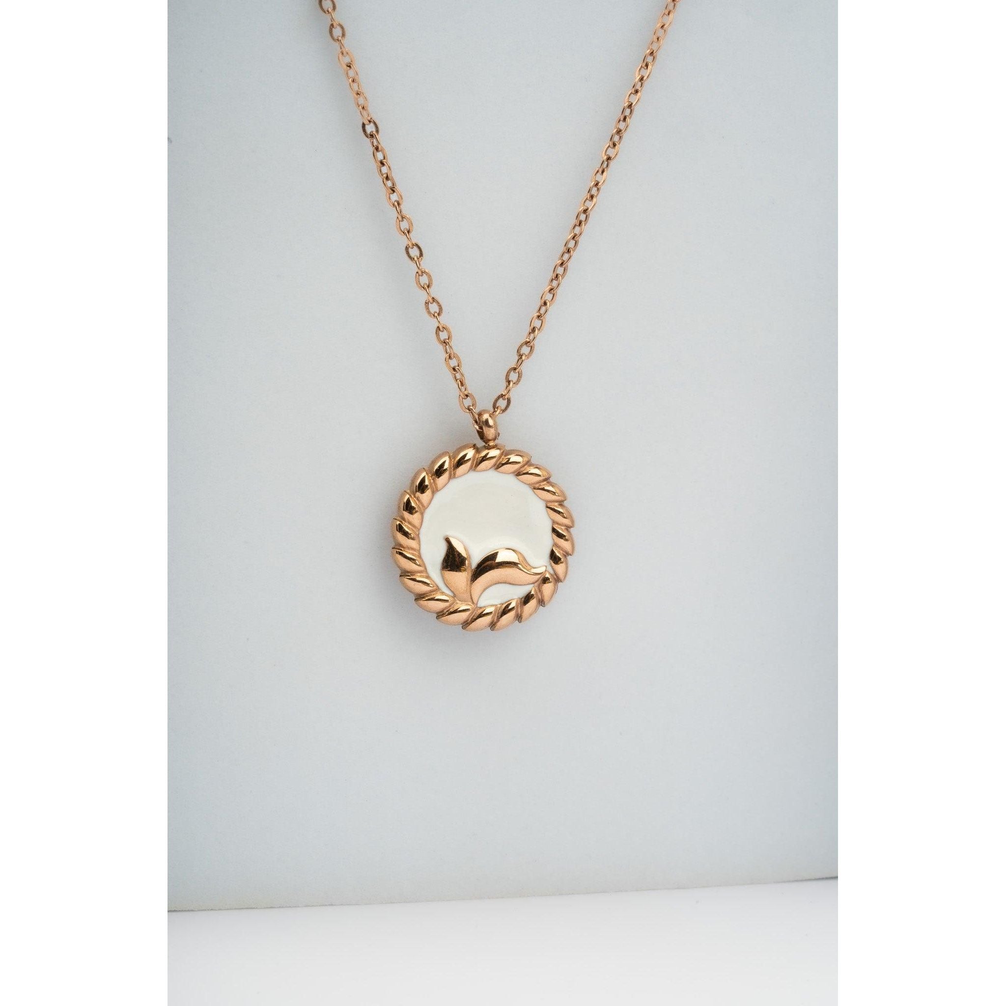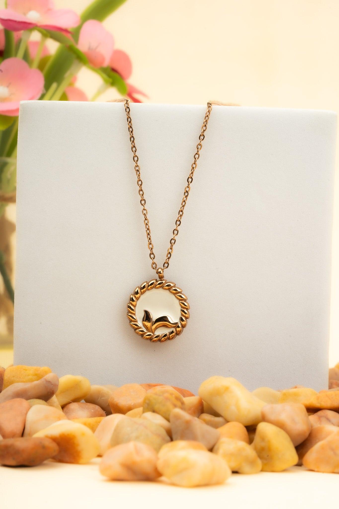 White mermaid chain with golden tone circle and stainless steel